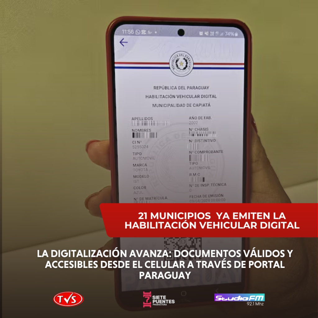 Un total de 21 municipios en Paraguay han adoptado la emisión de la habilitación vehicular en formato digital mediante la plataforma Portal Paraguay. Este documento cuenta virtual con la misma validez legal que su versión en papel, ofreciendo a los ciudadanos una alternativa práctica y moderna.