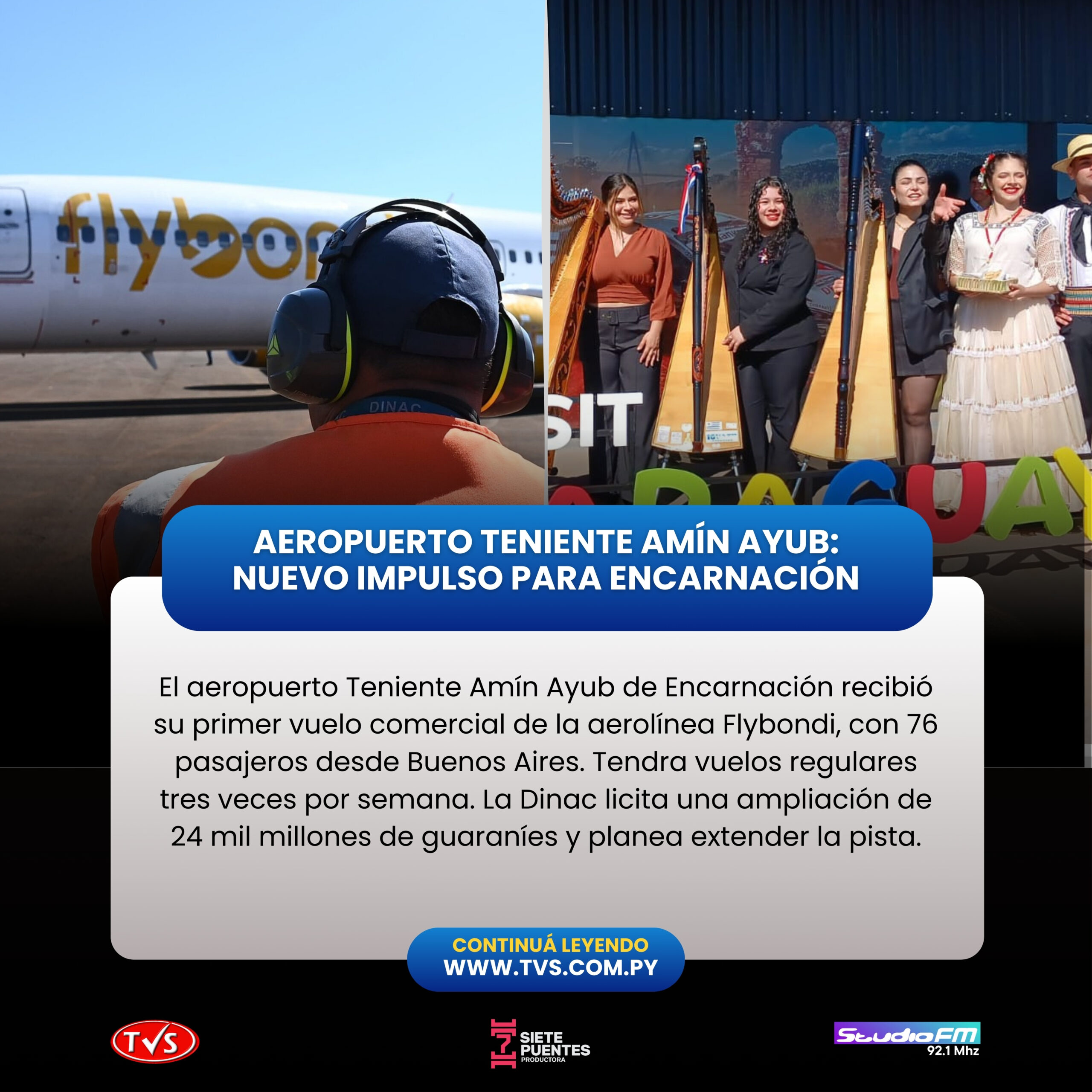 Encarnación está de fiesta, y no solo por el rugir de los motores del Mundial de Rally. Ayer, nuestra ciudad marcó un hito con la llegada del primer vuelo comercial al aeropuerto internacional Teniente Amín Ayub, operado por la aerolínea argentina Flybondi. Este acontecimiento pone a nuestra Perla del Sur en el mapa de la conectividad aérea regional.