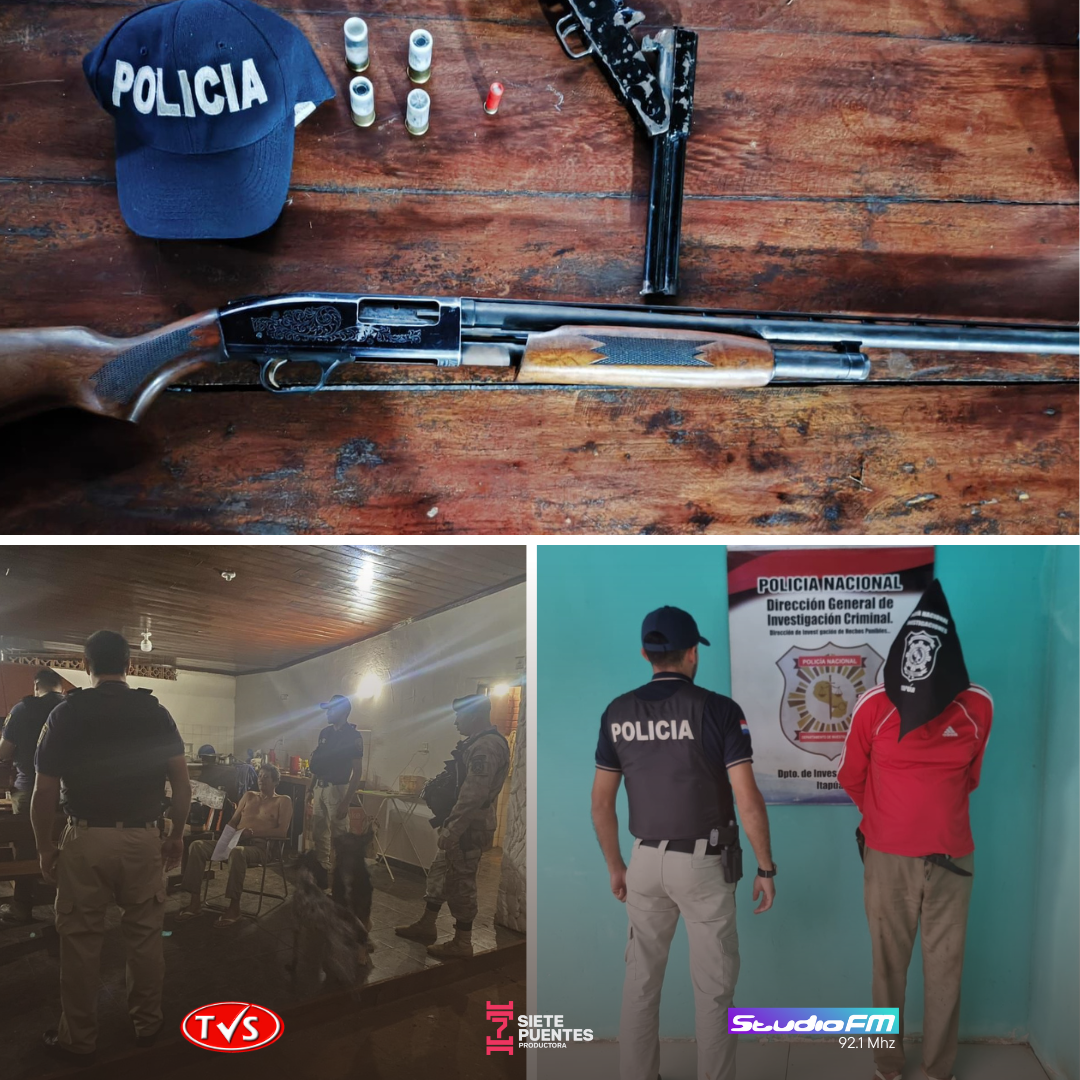 Durante el operativo, las autoridades incautaron varios objetos en el domicilio, entre ellos una escopeta marca Maverick calibre 12 con cuatro cartuchos vivos sin percutir, una escopeta calibre 18 de fabricación casera con un cartucho vivo y un teléfono celular Samsung de color negro. Estos elementos fueron puestos bajo custodia como indicios relevantes para la investigación.