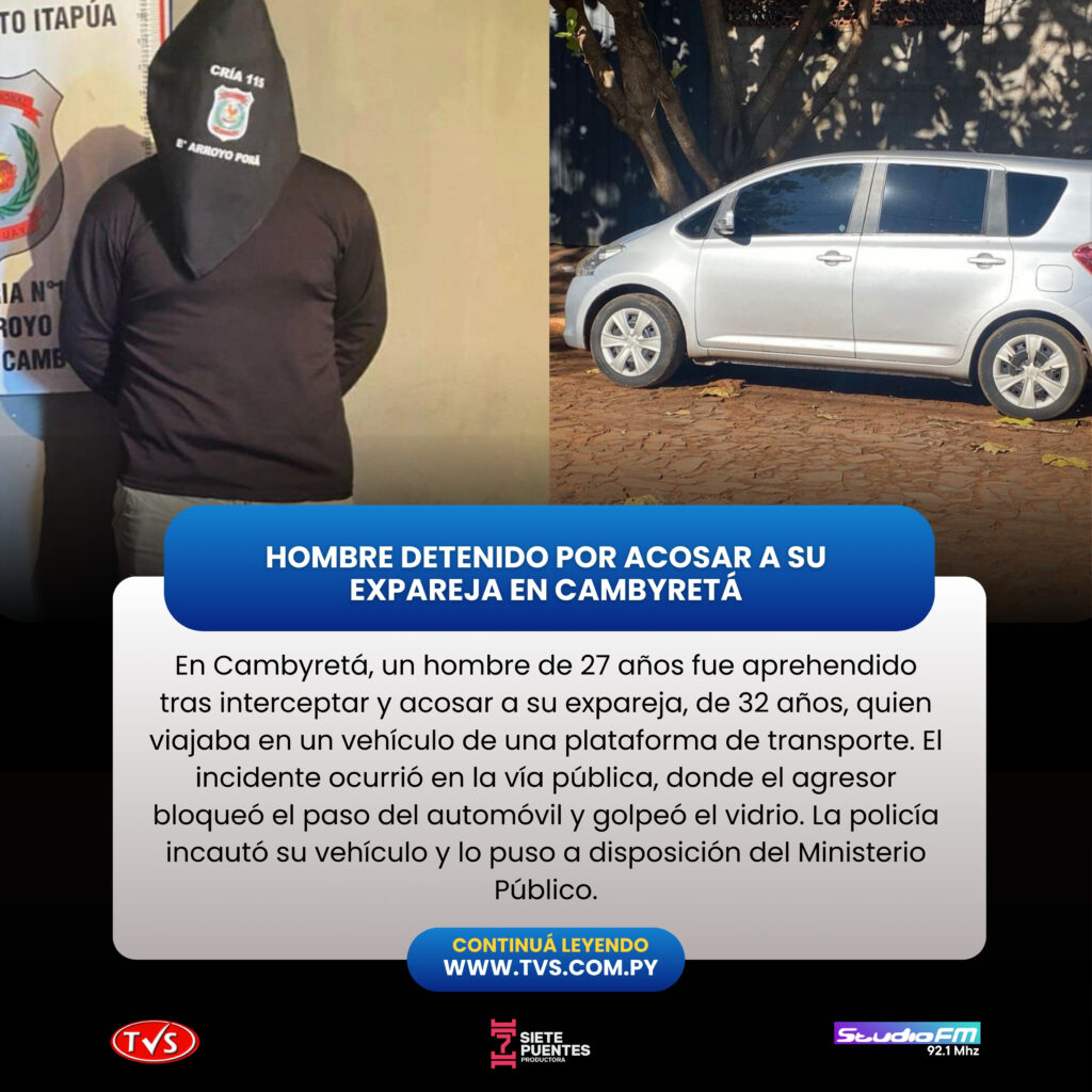 APREHENDEN A HOMBRE POR ACOSAR E INTERCEPTAR A SU EXPAREJA EN VEHÍCULO DE PLATAFORMA EN CAMBYRETÁ