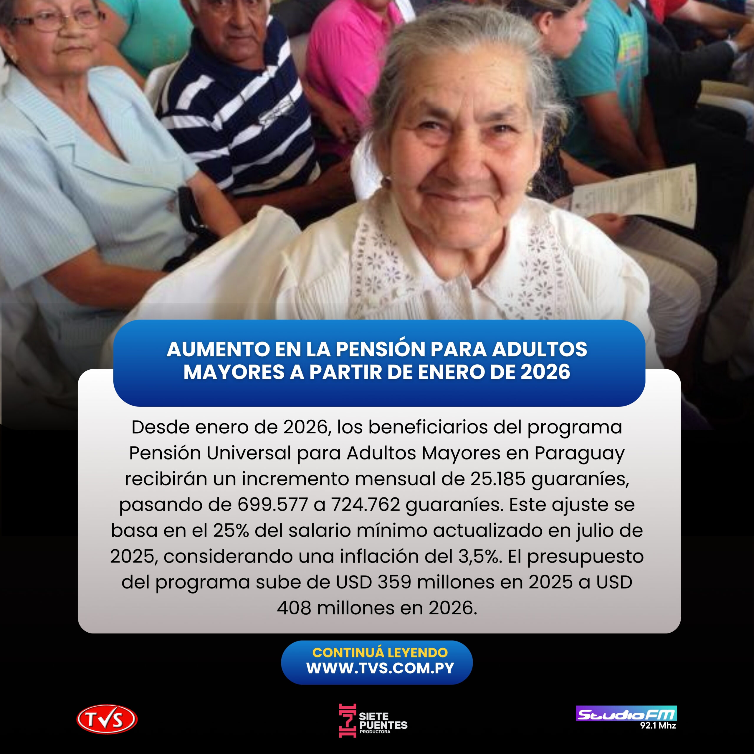 El programa operó en 2025 con un presupuesto de USD 359 millones, que para 2026 se eleva a USD 408 millones. Esta ampliación presupuestaria permitirá sostener a los beneficiarios existentes, sumar unos 30.000 nuevos participantes y absorber el aumento de 25.185 guaraníes por persona.