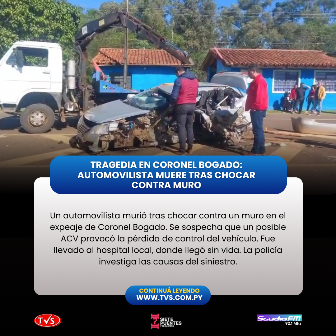 Un trágico accidente ocurrió este lunes en el peaje de Coronel Bogado, donde un conductor falleció tras impactar violentamente contra un muro de contención. La víctima, identificada como Lino Buss Martínez, originario de Trinidad y residente en Carapeguá, no sobrevivió al siniestro.