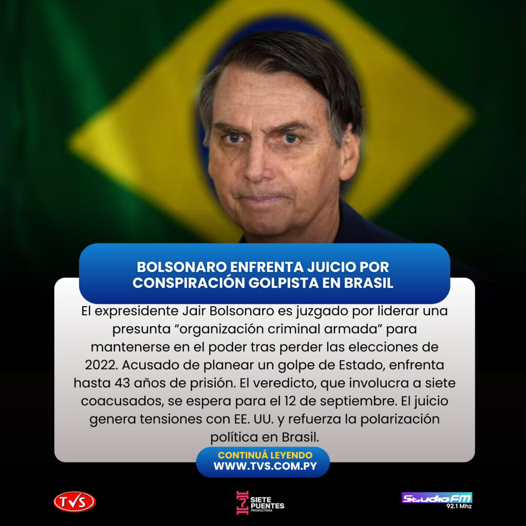 El expresidente brasileño Jair Bolsonaro (2019-2022), líder de la extrema derecha, comenzó a ser juzgado este martes por liderar una presunta “organización criminal armada” con el objetivo de mantenerse en el poder tras su derrota frente a Luiz Inácio Lula da Silva en las elecciones de 2022. El veredicto, que también involucra a siete coacusados, incluyendo exministros y altos mandos militares, se espera para el 12 de septiembre.