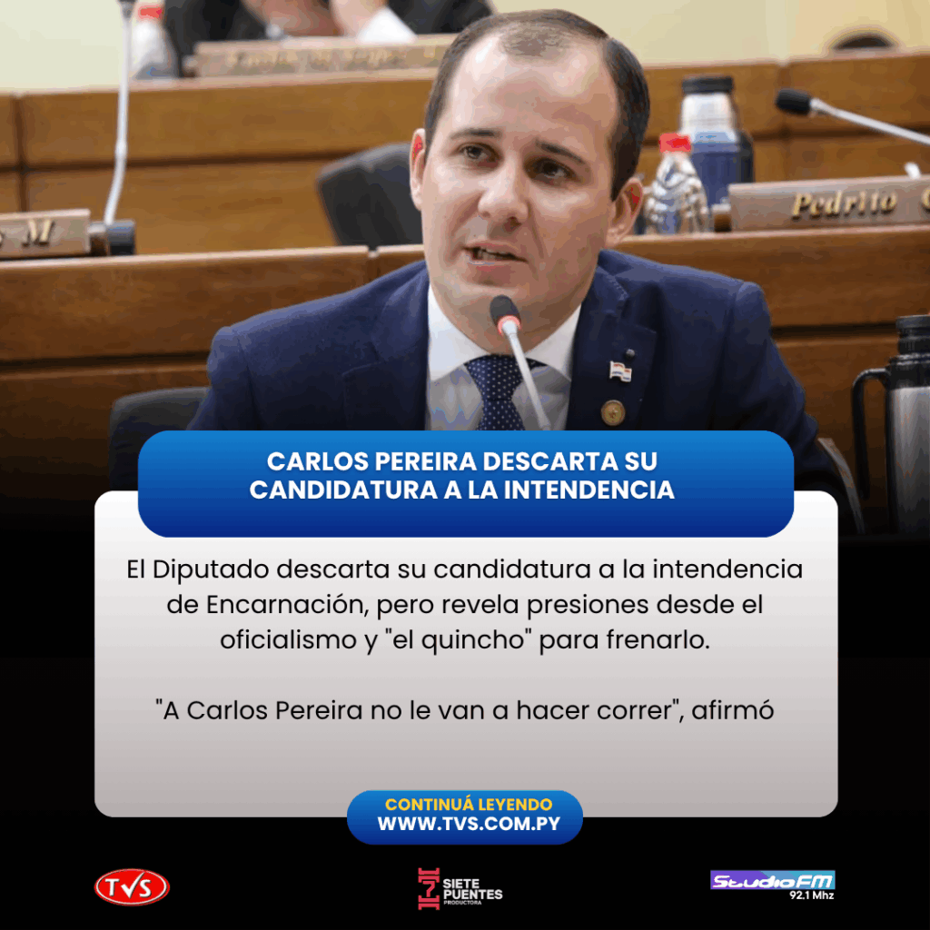 En una reciente entrevista en Studio Noticias, el diputado nacional por el departamento de Itapúa, Carlos Pereira, abordó los rumores sobre una posible candidatura a la intendencia de Encarnación, dejando en claro que, por el momento, no está en sus planes postularse. Sin embargo, sus declaraciones también revelaron tensiones políticas que podrían estar influyendo en su decisión, incluyendo presiones desde sectores oficialistas y lo que él denomina «el quincho», un grupo de poder político que, según Pereira, estaría maniobrando para evitar su candidatura.