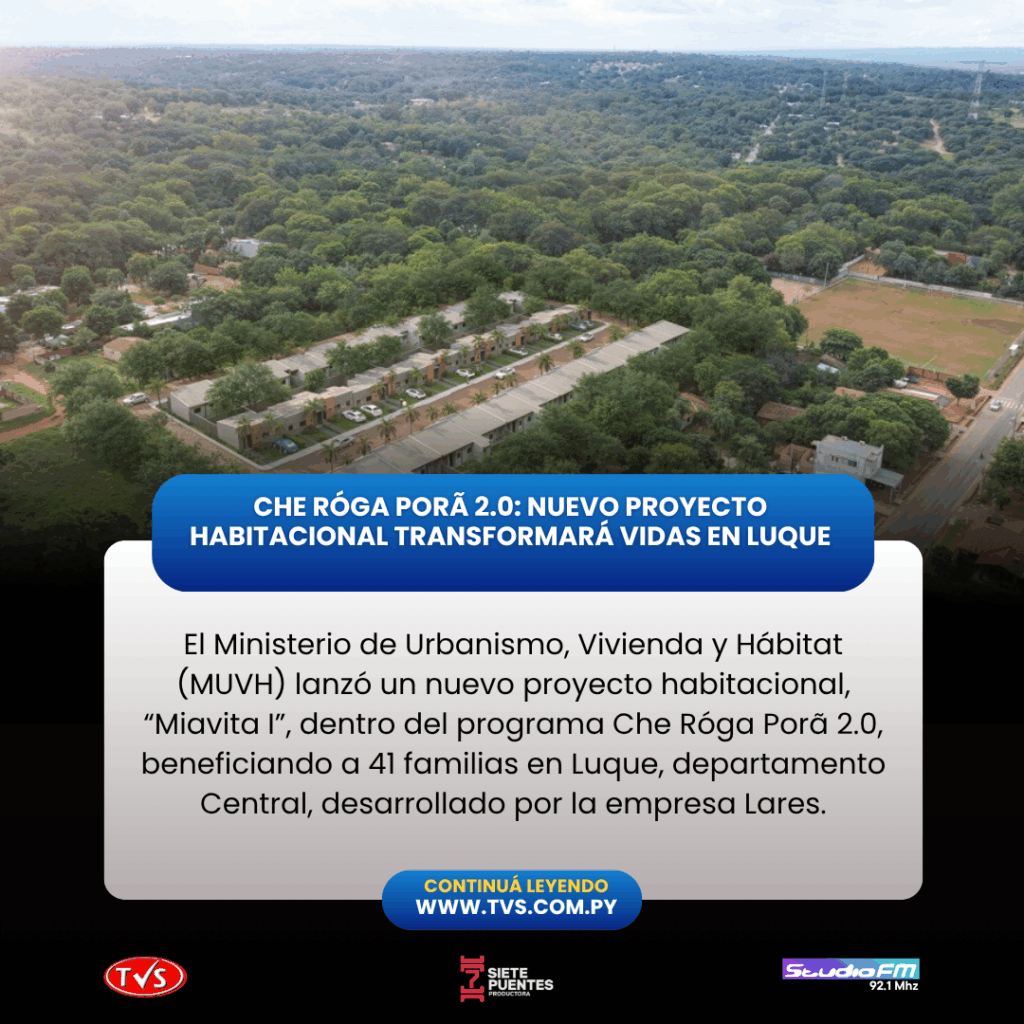 Asunción, 26 de julio de 2025 – El Ministerio de Urbanismo, Vivienda y Hábitat (MUVH) dio un paso más hacia la promoción del acceso a la vivienda digna con el lanzamiento de un nuevo proyecto habitacional en el marco del programa Che Róga Porã 2.0. Esta iniciativa beneficiará a 41 familias en la ciudad de Luque, departamento Central, con la construcción del complejo “Miavita I”, desarrollado por la empresa Lares.