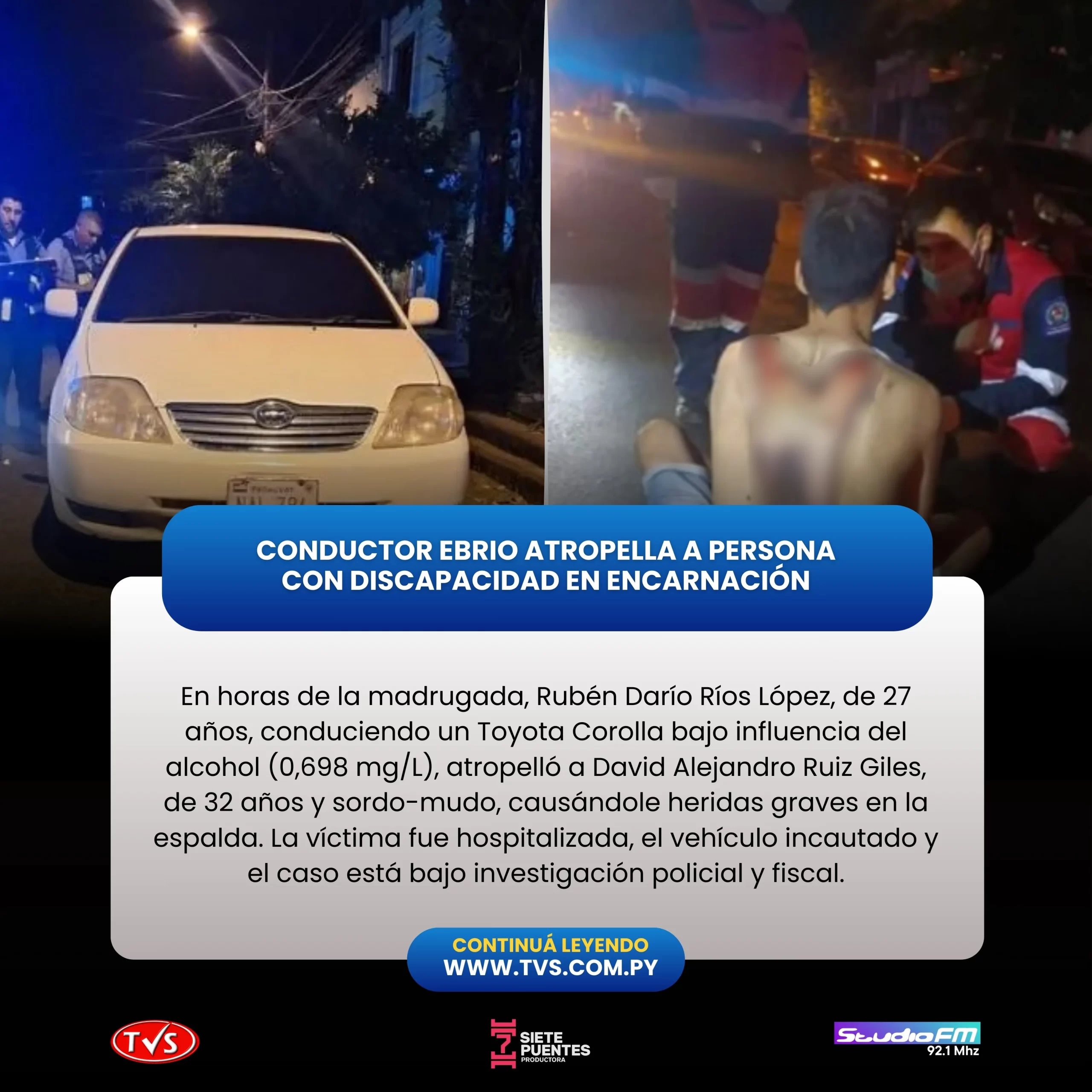 El equipo del Departamento de Tránsito de la Municipalidad de Encarnación, liderado por el inspector Óscar Chávez, sometió al chofer a una prueba de alcotest, la cual resultó positiva con un nivel de 0,698 mg/L de alcohol en sangre. La fiscal de turno de la Unidad Penal N.º 02, abogada Luz Saldívar, dispuso la retención del automóvil y su remisión al depósito municipal.