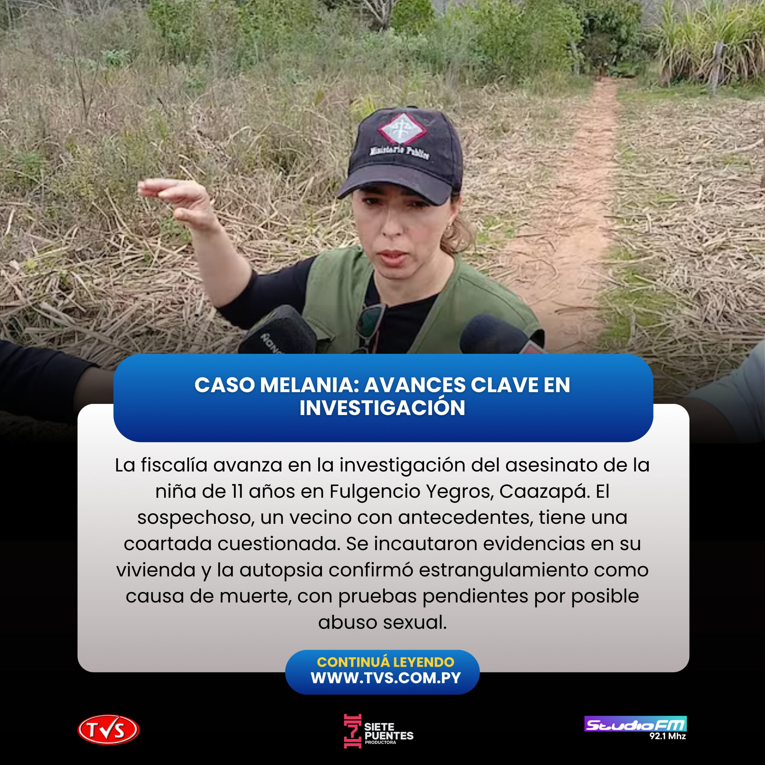 La fiscala Laury Vázquez, encargada de investigar el asesinato de Melania Monserrat Dávalos, una niña de 11 años, en Fulgencio Yegros, Caazapá, compartió en ABC Cardinal los últimos avances en las diligencias para esclarecer el crimen ocurrido el pasado lunes.