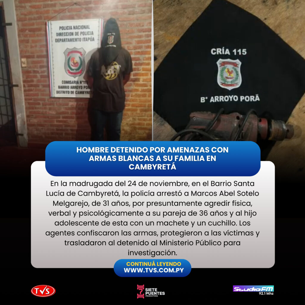 DETIENEN A HOMBRE TRAS AGREDIR A SU PAREJA CON UNA PERFORADORA EN CAMBYRETÁ