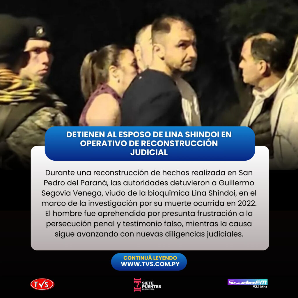 Un procedimiento policial y judicial realizado en la noche del jueves 11 de diciembre en el barrio Santa Catalina, San Pedro del Paraná, derivó en la detención de Guillermo Miguel Segovia Venega, viudo de la bioquímica Lina Shindoi Vigo. La diligencia buscó avanzar en la investigación del crimen ocurrido en noviembre de 2022, un caso que marcó profundamente a la comunidad del sur del país.