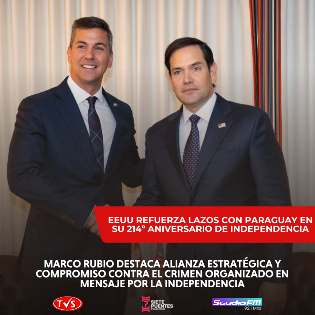 Estados Unidos celebra la relación con Paraguay en el 214º aniversario de su Independencia El secretario de Estado de EE.UU., Marco Rubio, felicitó a Paraguay por su 214º Día de la Independencia, subrayando la sólida alianza entre ambos países y el compromiso conjunto contra el crimen organizado.