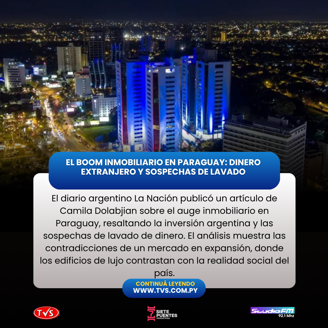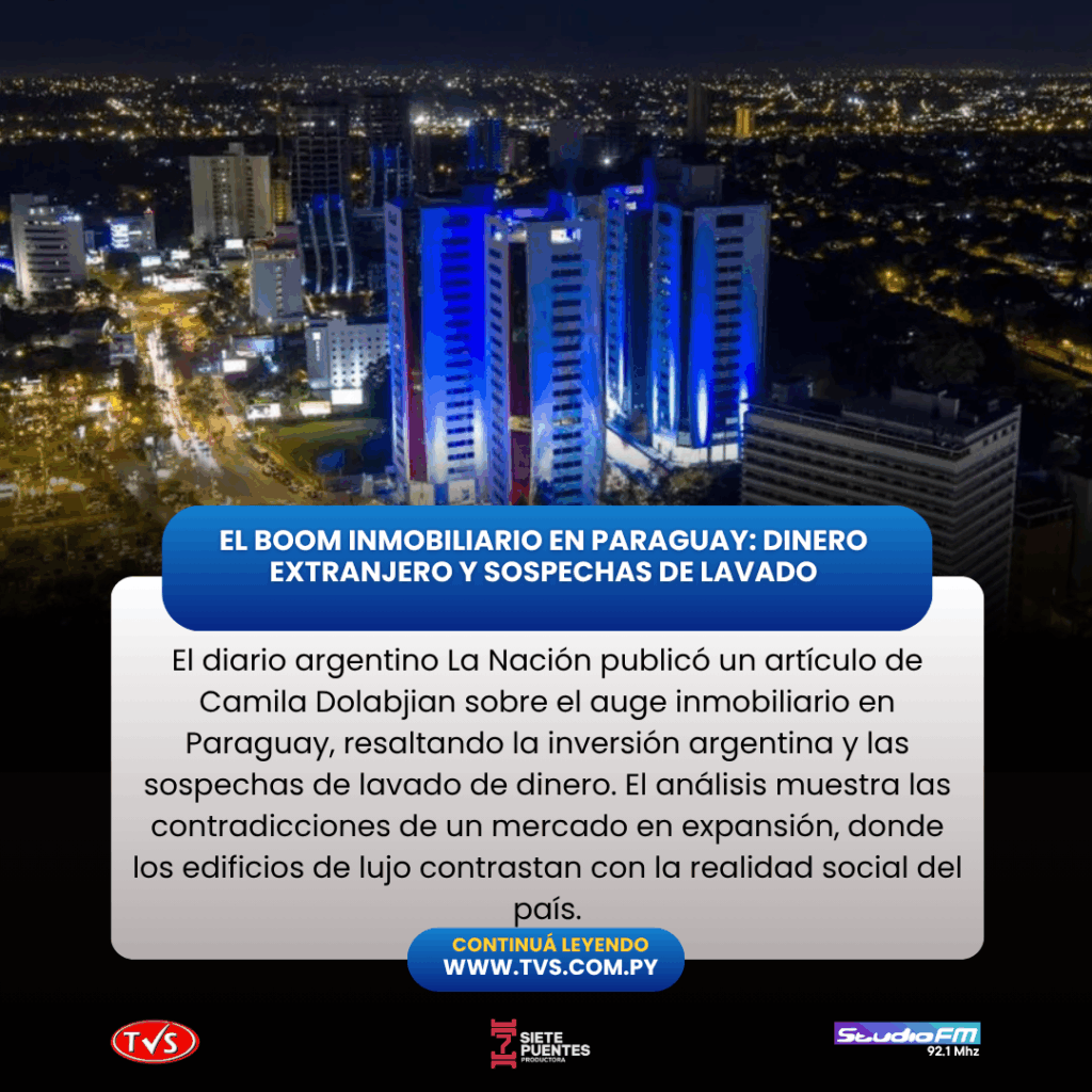El diario argentino La Nación publicó un extenso artículo, escrito por la periodista de investigación Camila Dolabjian, que analiza el auge inmobiliario en Paraguay, destacando la significativa participación de capitales argentinos y las sospechas de lavado de dinero que rodean este fenómeno. La nota pone en evidencia las contradicciones de un mercado inmobiliario en expansión, con edificios de lujo que contrastan con la realidad social del país.