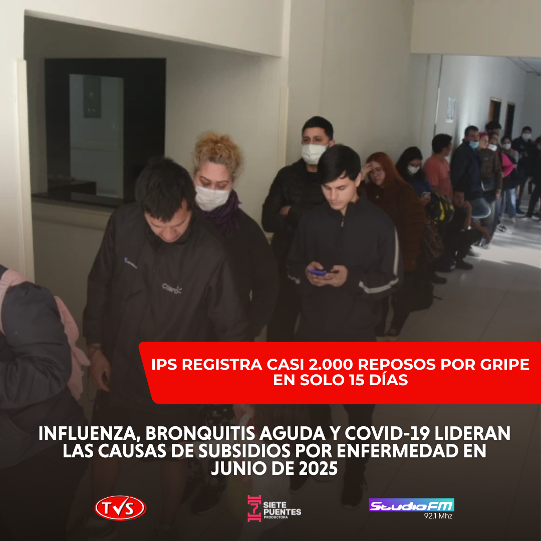 En las primeras dos semanas de junio de 2025, el Instituto de Previsión Social (IPS) registró un total de 1.953 reposos por gripe, alcanzando el 80% de los 2.429 casos reportados durante todo el mes de mayo. Esta cifra refleja un aumento significativo en comparación con los 1.724 reposos procesados en abril, según datos de la Dirección de Riesgo Laboral y Subsidios del IPS.