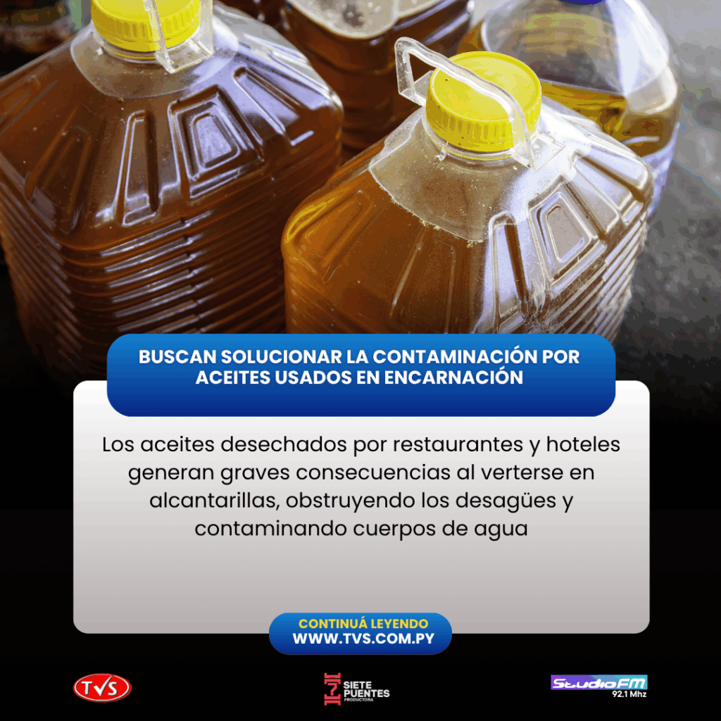 El concejal Andrés Morel, en una entrevista en Studio Noticias de TVS Encarnación, expuso un proyecto de ordenanza para abordar el problema ambiental de los aceites usados, un desafío creciente en la ciudad. Según Morel, los aceites desechados por restaurantes y hoteles generan graves consecuencias al verterse en alcantarillas, obstruyendo los desagües y contaminando cuerpos de agua.