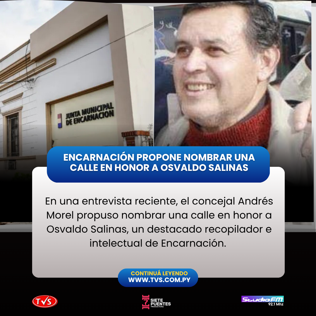 En una reciente entrevista en Studio Noticias de TVS Encarnación, el concejal Andrés Morel mencionó que presentó una minuta para nombrar una calle en honor a Osvaldo Salinas, un destacado recopilador e intelectual encarnaceno cuya humildad marcó su legado. Salinas, descrito como un investigador de bajo perfil, dejó un aporte invaluable a la historia regional al descubrir archivos históricos que resaltan la lucha por la justicia social en el Alto Paraná.