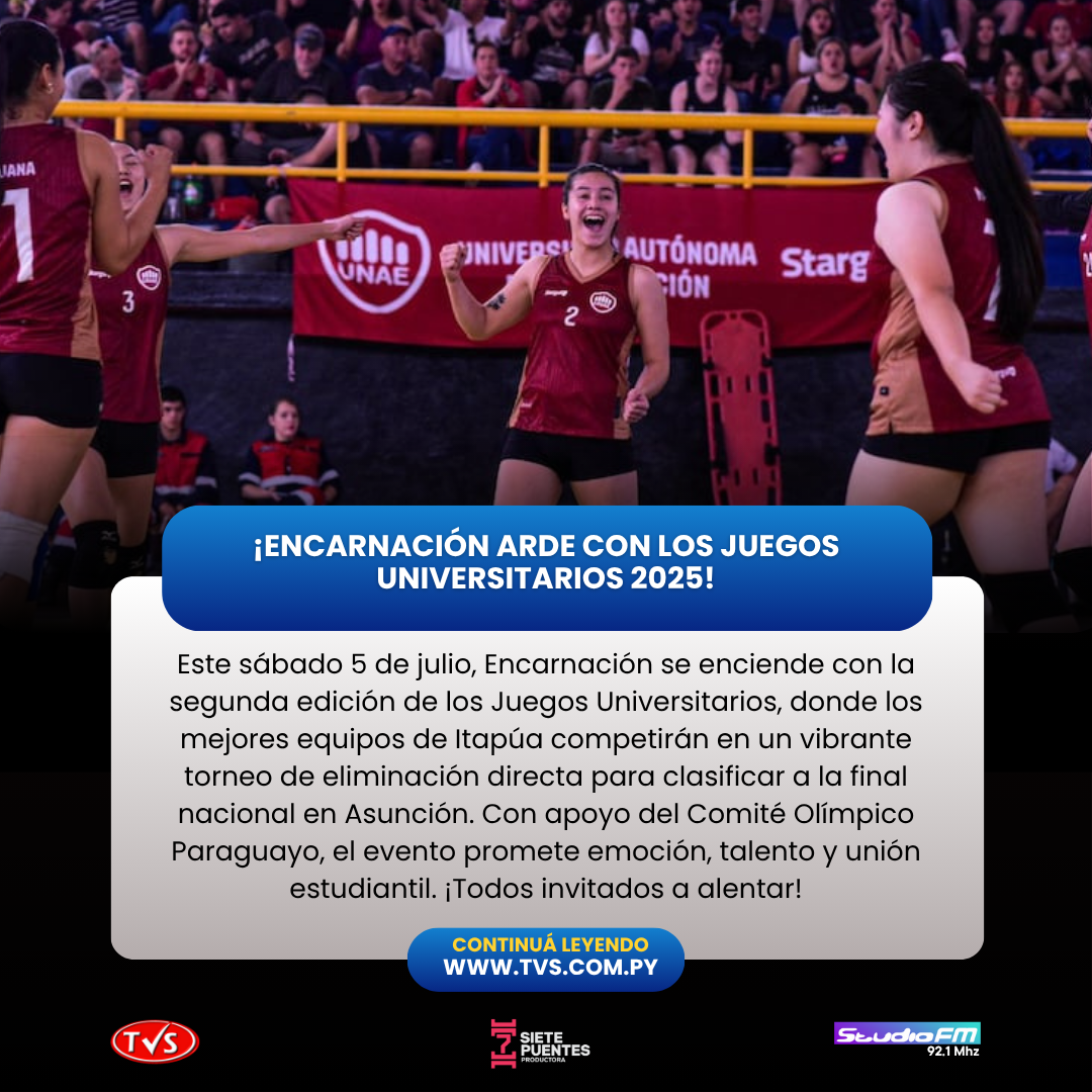 Encarnación está a full para recibir la segunda edición de los Juegos Universitarios 2025, que empiezan este sábado 5 de julio. La organización ya tiene todo listo, con los detalles deportivos y logísticos al día, para una jornada cargada de adrenalina, competencia y vibra universitaria.