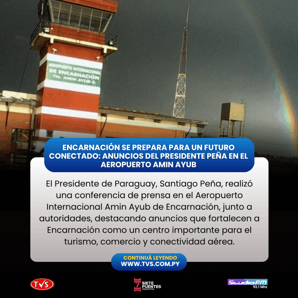 El Presidente de la República del Paraguay, Santiago Peña, encabezó una conferencia de prensa en el Aeropuerto Internacional Amin Ayub de Encarnación, acompañado por autoridades nacionales, regionales y municipales. El evento marcó un hito para la región de Itapúa, con anuncios que consolidan a Encarnación como un centro clave para el turismo, el comercio y la conectividad aérea.