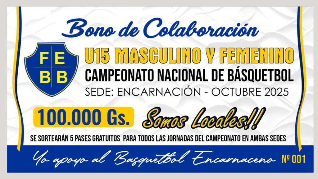 La ciudad de Encarnación se prepara para recibir, después de varios años, el Campeonato Nacional de Básquetbol Sub 15. La competencia se iniciará el próximo 4 de octubre y contará con la participación de 19 Selecciones en masculino y 16 Selecciones confirmadas en femenino, sumando además a los clubes capitalinos Olimpia y Deportivo San José. Esta cifra constituye un récord histórico de participación a nivel nacional.