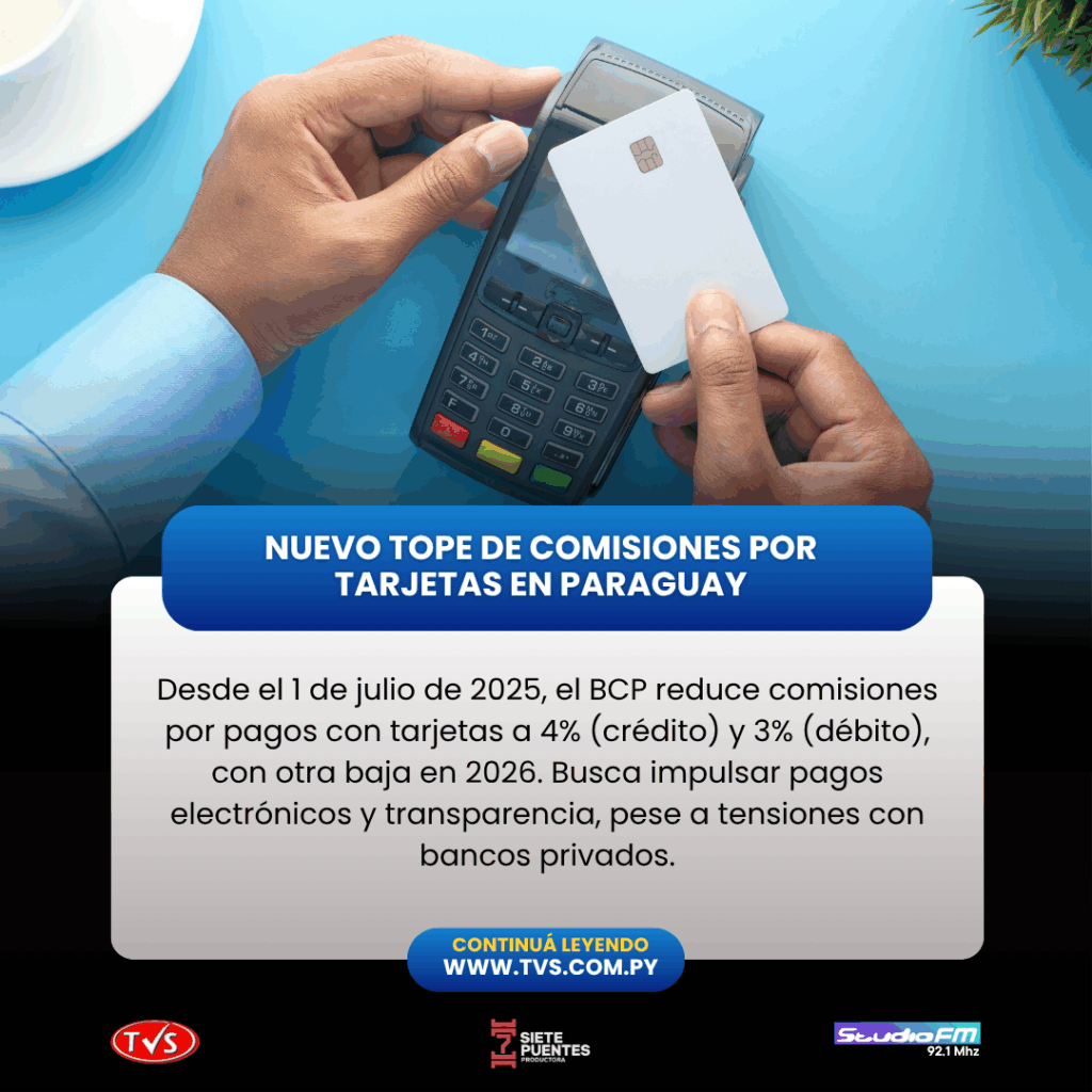 A partir del 1 de julio de 2025, el Banco Central del Paraguay (BCP) implementa un ajuste en los porcentajes máximos de las comisiones por intermediación en pagos con tarjetas de crédito y débito, con el objetivo de fomentar el uso de medios electrónicos de pago y reducir la dependencia del dinero en efectivo.