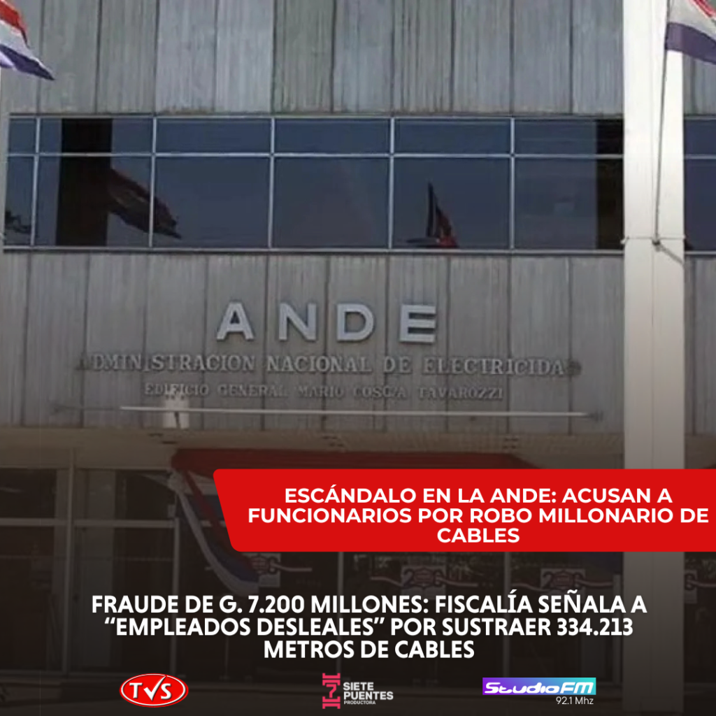 La Fiscalía de Delitos Económicos, a cargo del fiscal Silvio Corbeta, presentó una acusación contra cuatro funcionarios de la Administración Nacional de Electricidad (ANDE) y un ex empleado de una empresa tercerizada, por un millonario robo de cables que causó un perjuicio de aproximadamente G. 7.200 millones. Los acusados enfrentarán juicio oral por el delito de estafa, tras haber retirado de forma fraudulenta 334.213 metros lineales de cables entre el 1 de enero de 2021 y el 31 de marzo de 2022.