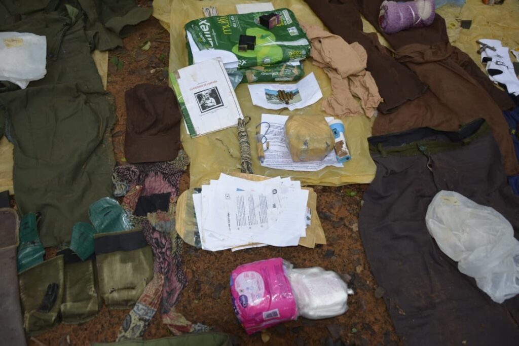 La intervención se llevó a cabo con acompañamiento del agente fiscal Pablo Zárate, quien supervisó la incautación de diversos objetos hallados en el lugar. Entre las evidencias se encontraron equipos electrónicos, prendas de vestir, mochilas, cuadernos de campaña, un radio comunicador, municiones de distintos calibres y un artefacto explosivo de fabricación casera con su respectivo detonador, además de otros elementos logísticos.