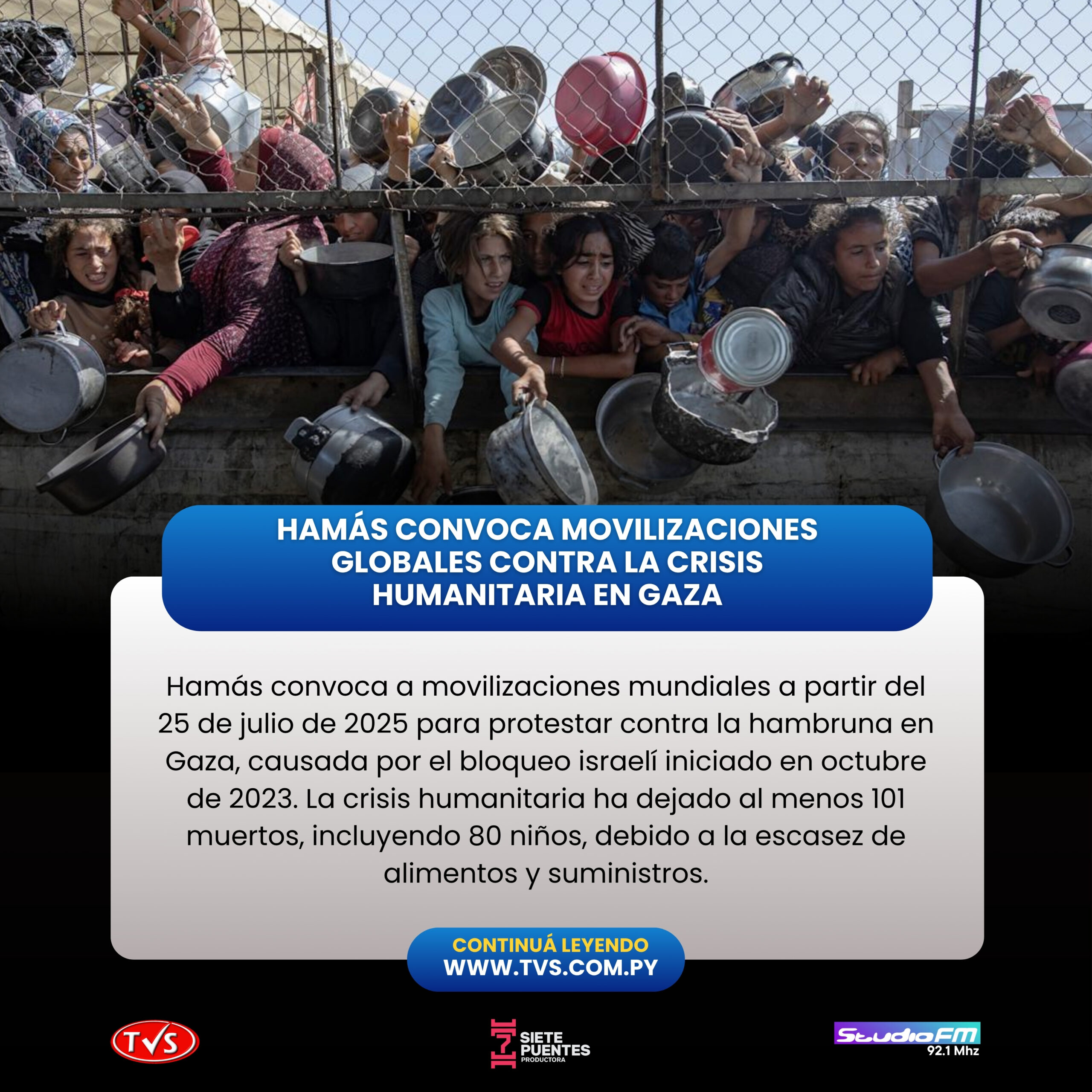 Hamás llamó a un “gran movimiento popular y masivo” en capitales y ciudades de todo el mundo los días 25, 26 y 27 de julio de 2025, y en los días posteriores, hasta que se levante el bloqueo impuesto sobre la Franja.