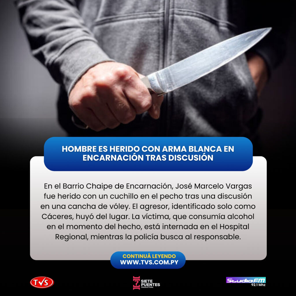En la tarde del sábado, un violento incidente tuvo lugar en el Barrio Chaipe de Encarnación, donde un hombre resultó herido de arma blanca tras una disputa en la vía pública.