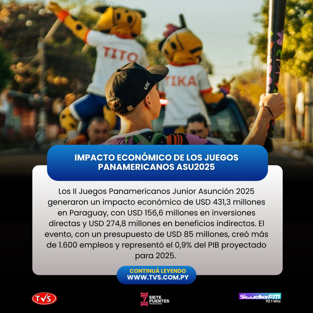 Los II Juegos Panamericanos Junior Asunción 2025, celebrados en Paraguay entre el 9 y el 23 de agosto, generaron un impacto económico de USD 431,3 millones, según un informe publicado por la Secretaría Nacional de Deportes (SND).