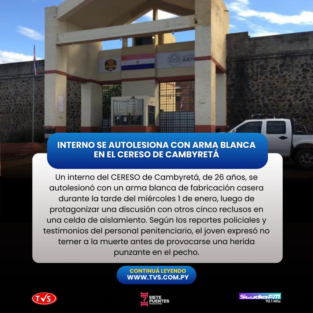 Un interno del Centro de Rehabilitación Social (CERESO) de Cambyretá resultó herido con un arma blanca de fabricación casera durante la tarde del miércoles 1 de enero.