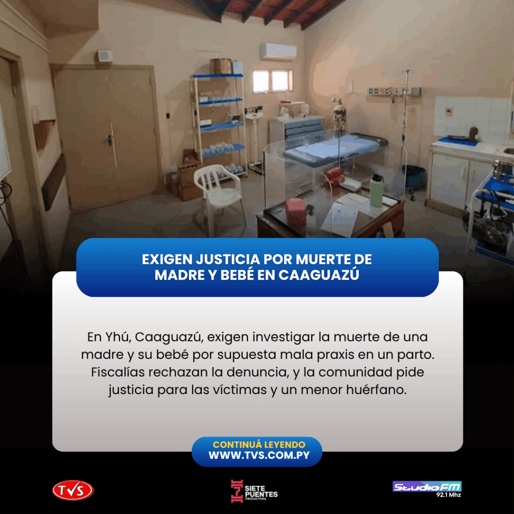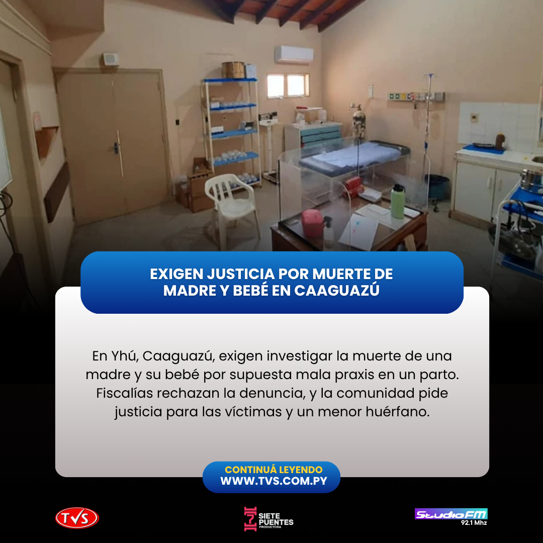 INVESTIGACIÓN EXIGIDA POR MUERTE DE MADRE Y BEBÉ EN CAAGUAZÚ