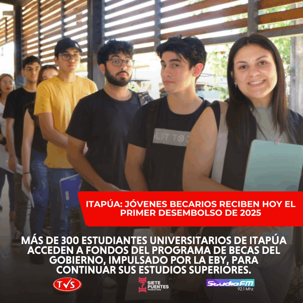 Hoy, 19 de junio de 2025, más de 300 estudiantes universitarios del departamento de Itapúa recibirán el primer desembolso del año correspondiente al Programa de Becas del Gobierno del Paraguay, gestionado por la Entidad Binacional Yacyretá (EBY).