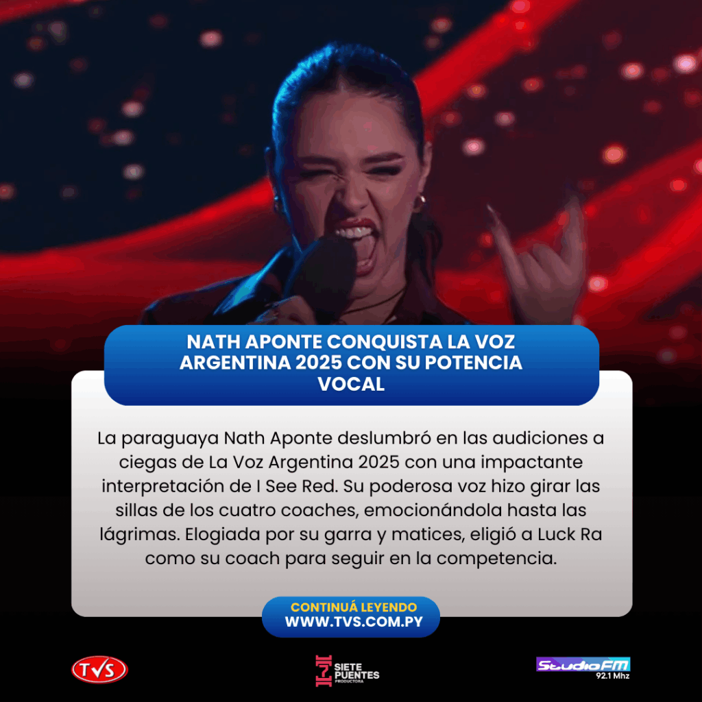 Nathalie Cajigal, más conocida como Nath Aponte, deslumbró a los coaches en las audiciones a ciegas de La Voz Argentina 2025 con una potente interpretación de I See Red de Everybody Loves An Outlaw.