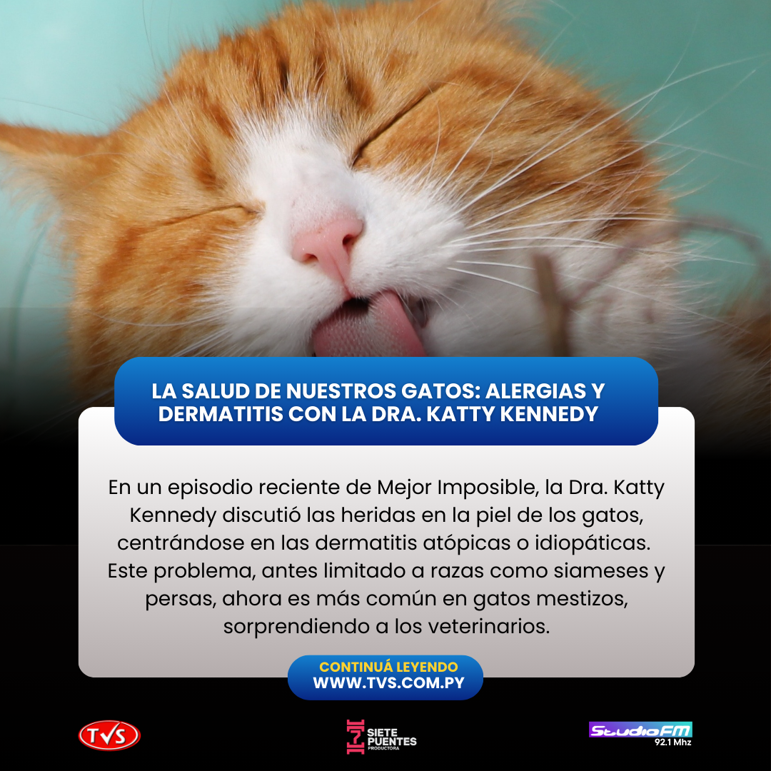 En un reciente episodio del programa Mejor Imposible, la Dra. Katty Kennedy, veterinaria especializada, abordó un tema cada vez más común en las consultas: las heridas en la piel de los gatos, particularmente las dermatitis atópicas o idiopáticas. Este problema, que antes se asociaba principalmente a razas específicas como los siameses, persas o himalayos, ahora se observa con mayor frecuencia en gatos mestizos, lo que ha sorprendido a los profesionales.