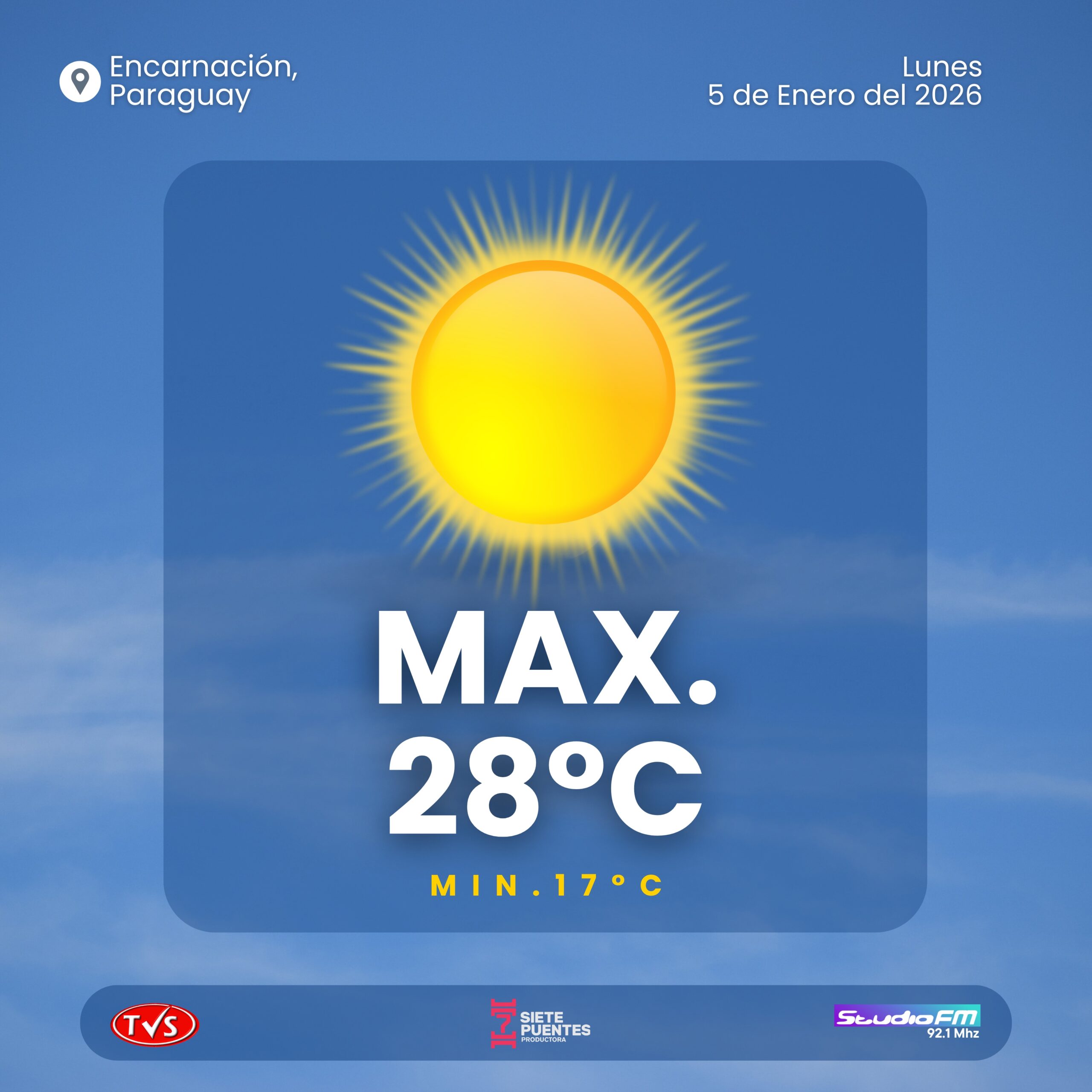 Este lunes, el ambiente variará entre fresco y cálido, con temperaturas máximas que alcanzarán los 29 grados Celsius en Encarnación, 30 en Ciudad del Este, 32 en Asunción y hasta 33 en el Chaco.
