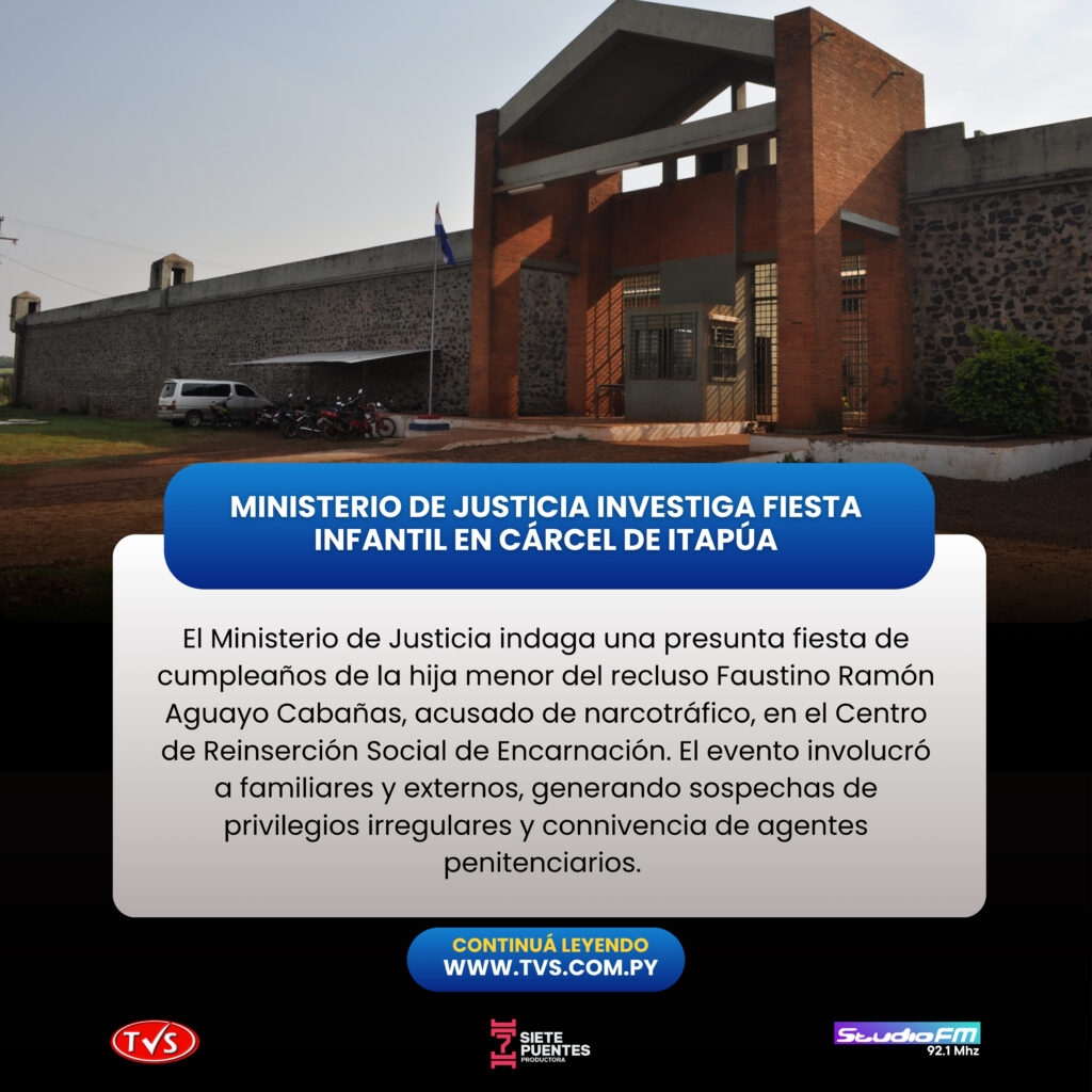 El Ministerio de Justicia ha iniciado una indagación interna luego de que se difundieran reportes sobre una presunta fiesta llevada a cabo en el Centro de Reinserción Social de Encarnación. En el incidente, el recluso Faustino Ramón Aguayo Cabañas, acusado de encabezar una red de narcotráfico de cocaína, habría organizado el festejo del cumpleaños de su hija menor dentro de las instalaciones penitenciarias.
