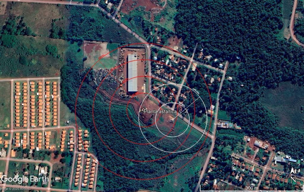 - UBICACIÓN INADECUADA: La planta asfáltica se encuentra a solo 60 metros de zonas residenciales, contraviniendo la recomendación de mantener estas instalaciones a un mínimo de 500 metros de áreas pobladas. Este tipo de maquinaria genera ruidos intensos, riesgos de incendios y explosiones por los derivados del petróleo utilizados, además de contaminación del suelo y el aire. El Plan Encarnación+, que debería guiar el desarrollo urbano, señala esta área como de alta densidad y en expansión, lo que agrava el problema.