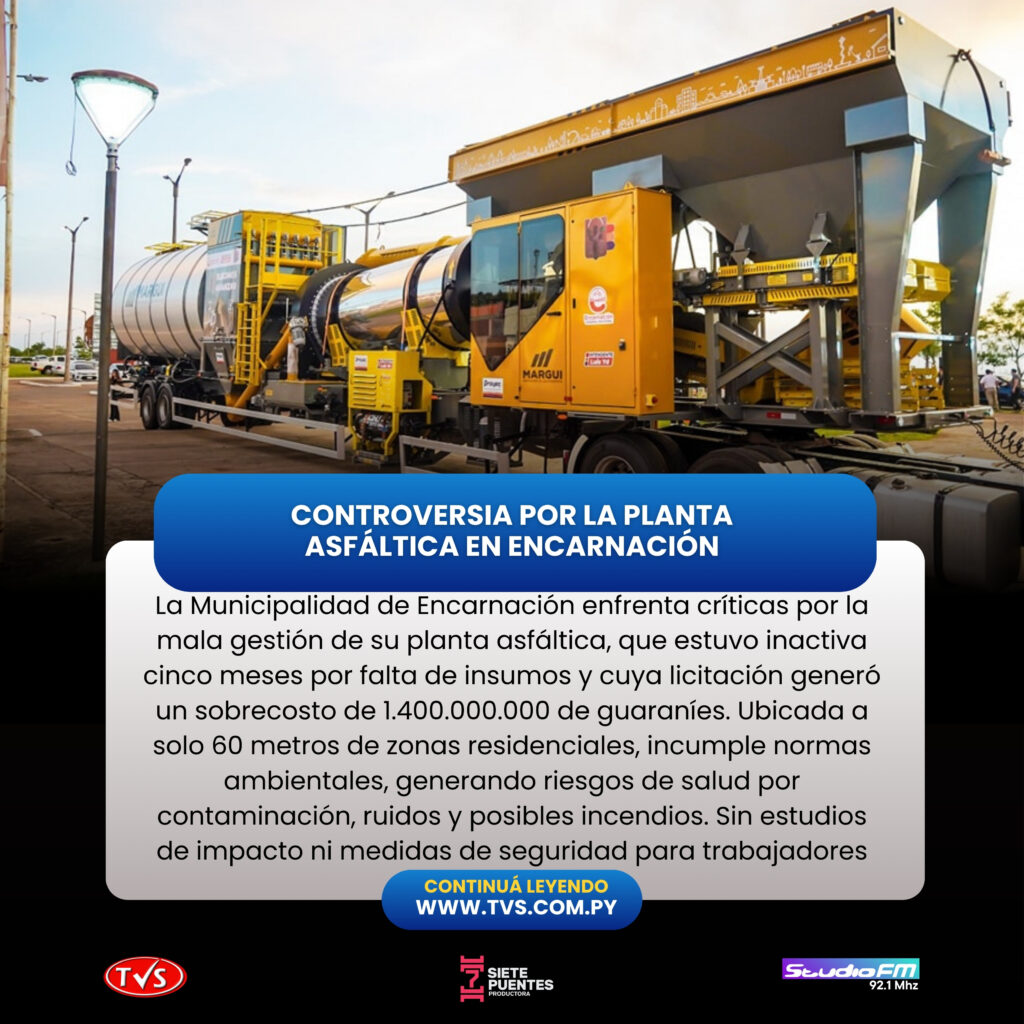 La Municipalidad de Encarnación vuelve a ser el centro de críticas por su deficiente planificación, esta vez con la controvertida gestión de su planta asfáltica. Celebrada como un gran logro al momento de su adquisición, la planta permaneció inactiva durante cinco meses frente al sambódromo debido a la falta de fondos para adquirir los insumos necesarios. Este hecho ya evidenció una planificación deficiente, pero los problemas no terminan ahí.