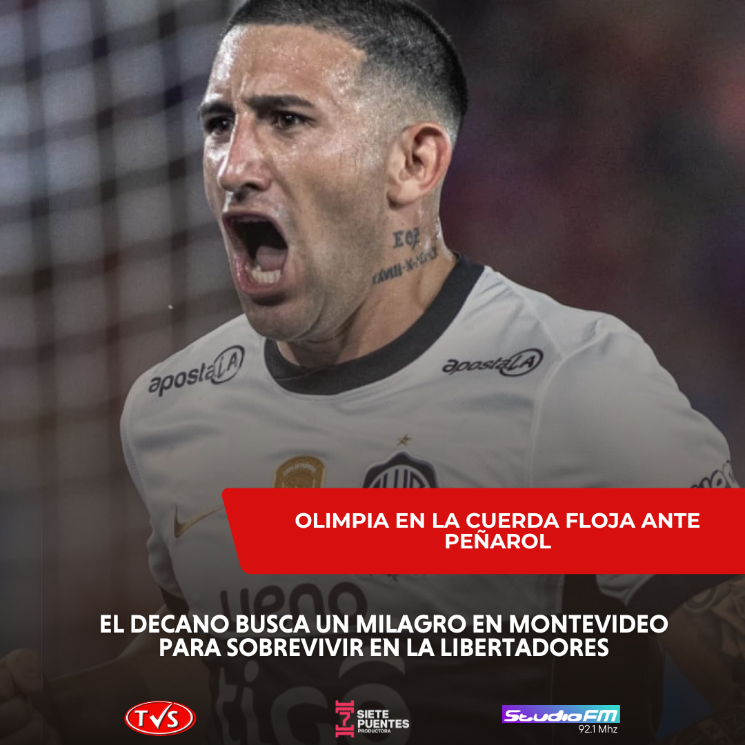 Esta noche, a partir de las 19:00, Olimpia se mide ante Peñarol en el estadio Campeón del Siglo de Montevideo, con la obligación de conseguir su primera victoria en el Grupo H de la Copa Libertadores, donde suma apenas dos puntos, para mantener vivas sus esperanzas de avanzar.