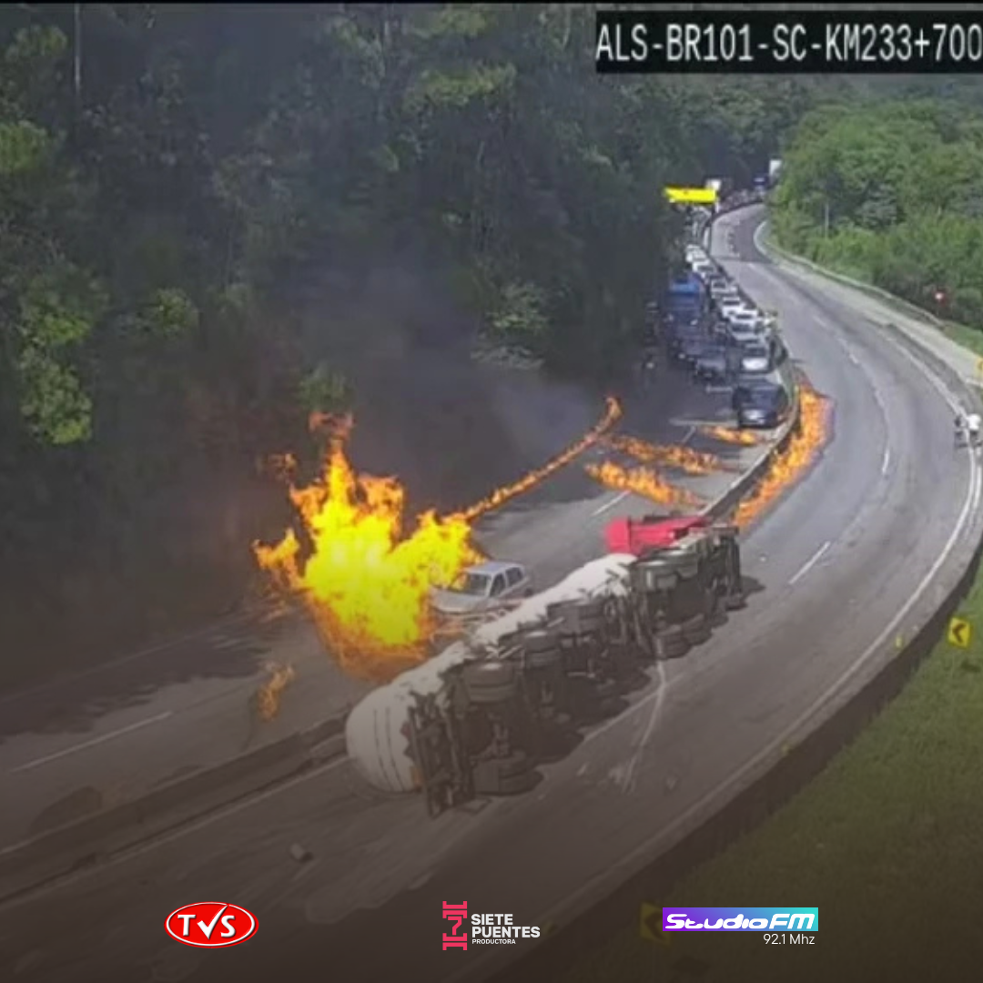 Un camión cisterna cargado de etanol volcó, explotó y desató un incendio que consumió más de 20 vehículos en una…