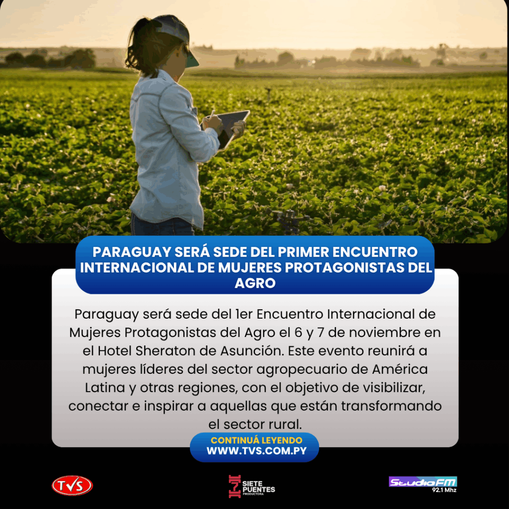 Asunción, 21 de julio de 2025 – Por primera vez, Paraguay acogerá el 1er Encuentro Internacional de Mujeres Protagonistas del Agro, un evento pionero que reunirá a mujeres líderes del sector agropecuario de América Latina y otras regiones del mundo. Este encuentro, declarado de interés turístico, se llevará a cabo los días 6 y 7 de noviembre en el Hotel Sheraton de Asunción, con el objetivo de visibilizar, conectar e inspirar a mujeres que están transformando el sector rural desde todos los eslabones de la cadena productiva.