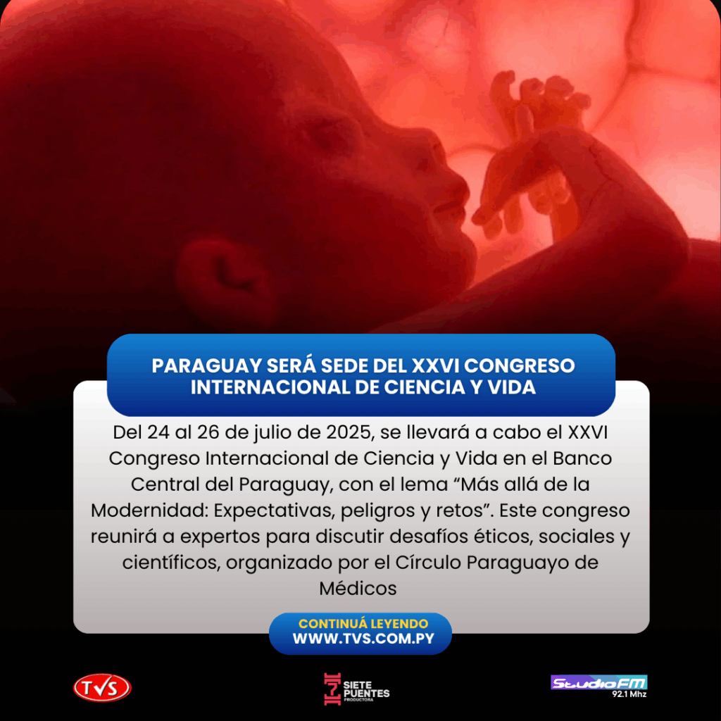 Del 24 al 26 de julio de 2025, la Sala de Convenciones del Banco Central del Paraguay acogerá el XXVI Congreso Internacional de Ciencia y Vida (CICV), un evento que bajo el lema “Más allá de la Modernidad: Expectativas, peligros y retos” reunirá a destacados referentes nacionales e internacionales para reflexionar sobre los desafíos éticos, sociales y científicos de la actualidad. Organizado por el Círculo Paraguayo de Médicos (CPM) y la Asociación de Estudios Bioéticos (AEB), con el patrocinio de la Universidad Libre Internacional de las Américas (ULIA), el congreso promete ser un espacio de diálogo interdisciplinario.