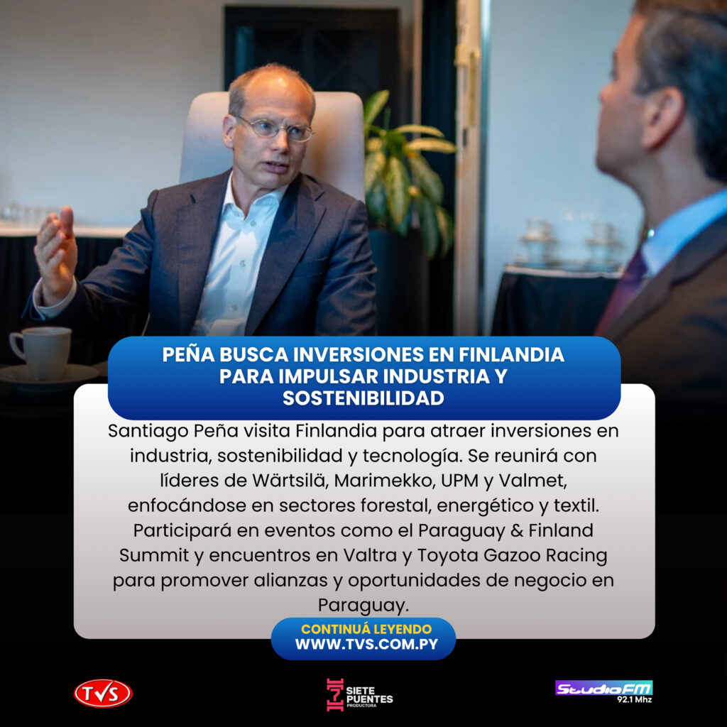 Finalmente, Peña participará en un evento organizado por el medio finlandés Keskisuomalainen, que reunirá a tomadores de decisiones de cooperativas y grupos financieros para conocer las oportunidades que Paraguay ofrece en los sectores energético y forestal.