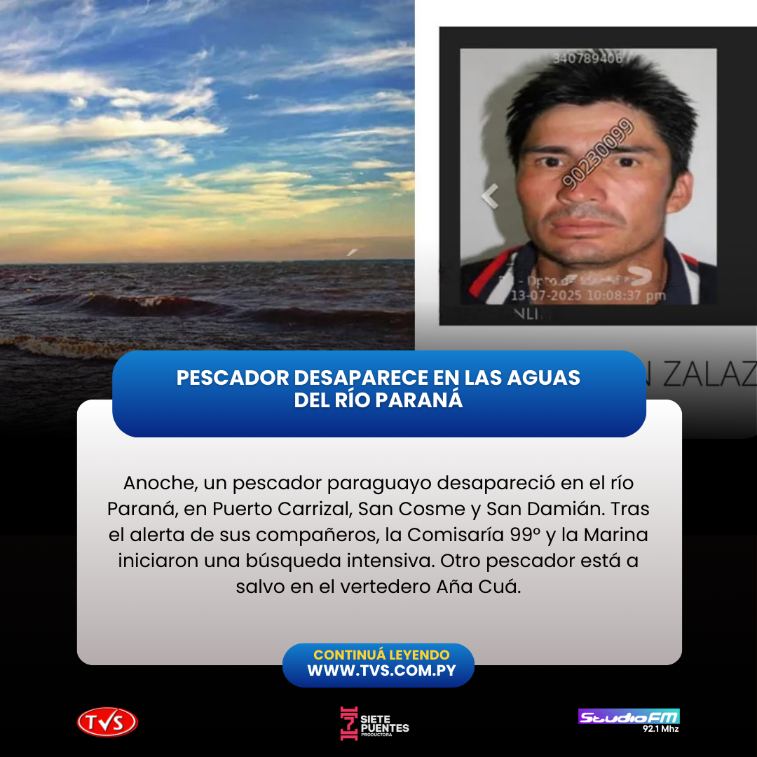 Tras el alerta, efectivos de la comisaría acudieron al lugar y recabaron testimonios. Según los relatos, otro pescador, Rolando Agustín Fernández Servían, logró llegar al vertedero Aña Cuá, donde permanece bajo custodia de la Marina. Mientras tanto, las autoridades intensifican la búsqueda de Zalazar Irala.