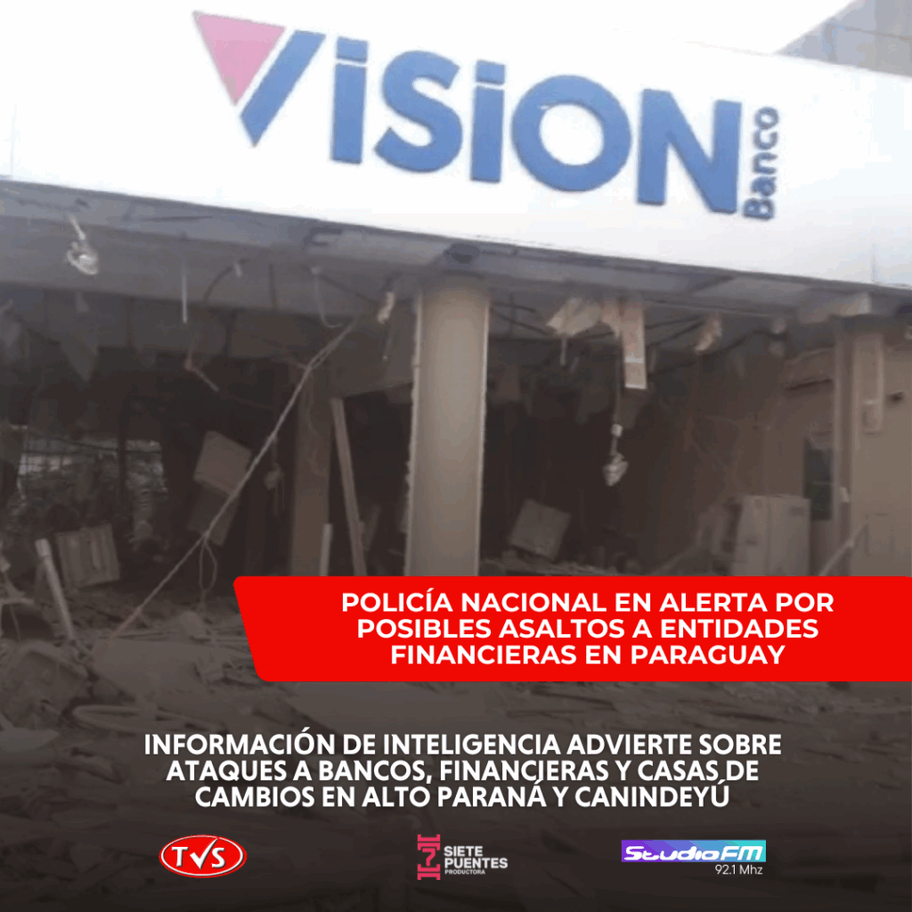 La Policía Nacional de Paraguay se encuentra en máxima alerta tras recibir información de inteligencia sobre posibles asaltos a transportadoras de caudales, bancos, financieras y casas de cambios en los departamentos de Alto Paraná y Canindeyú. El comandante Carlos Benítez, en diálogo con NPY, confirmó que la información fue compartida el domingo por el Comando Tripartito desde Brasil, advirtiendo sobre la posible acción de grupos criminales organizados.