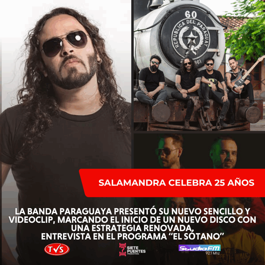La banda paraguaya Salamandra, ícono del rock nacional, está de festejo. Con 25 años de carrera, el grupo liderado por Rodney Cords (guitarrista) presentó su nuevo sencillo «La Mentira», el primer corte de su próximo disco, acompañado de un videoclip que ya está disponible en todas las plataformas digitales. En una reciente entrevista en el programa El Sótano, Rodney compartió detalles sobre este lanzamiento, la evolución de la banda y su conexión con el público.