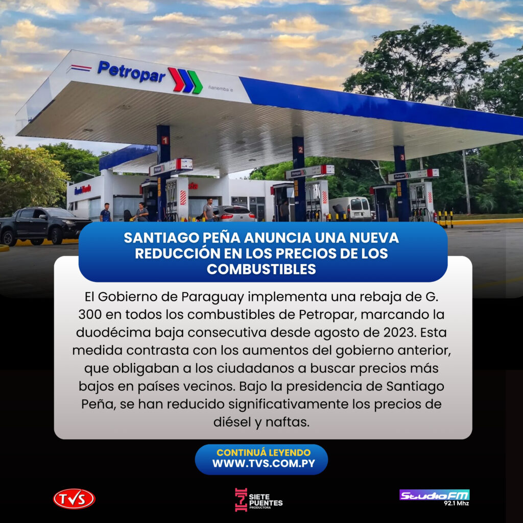 En su perfil de X, el presidente Peña declaró: “En el mes en que más te movés, bajamos nuevamente los precios de los combustibles. Esta es la duodécima baja desde el inicio de nuestro gobierno. Un Paraguay gigante se construye con un Estado que cuida el bolsillo de su gente.”