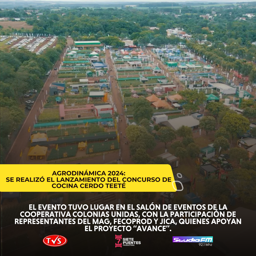 El pasado viernes 18 de octubre de 2024, se llevó a cabo la conferencia de prensa para el lanzamiento oficial del Concurso de Cocina Cerdo Teeté en el marco de la feria anual Agrodinámica 2024. El evento se desarrolló en el Salón de Eventos de la Cooperativa Colonias Unidas, contando con la presencia de representantes del Ministerio de Agricultura y Ganadería (MAG), la Federación de Cooperativas de Producción (FECOPROD) y la Agencia de Cooperación Internacional del Japón (JICA), quienes impulsan este importante proyecto a través de la iniciativa Proyecto AVANCE.