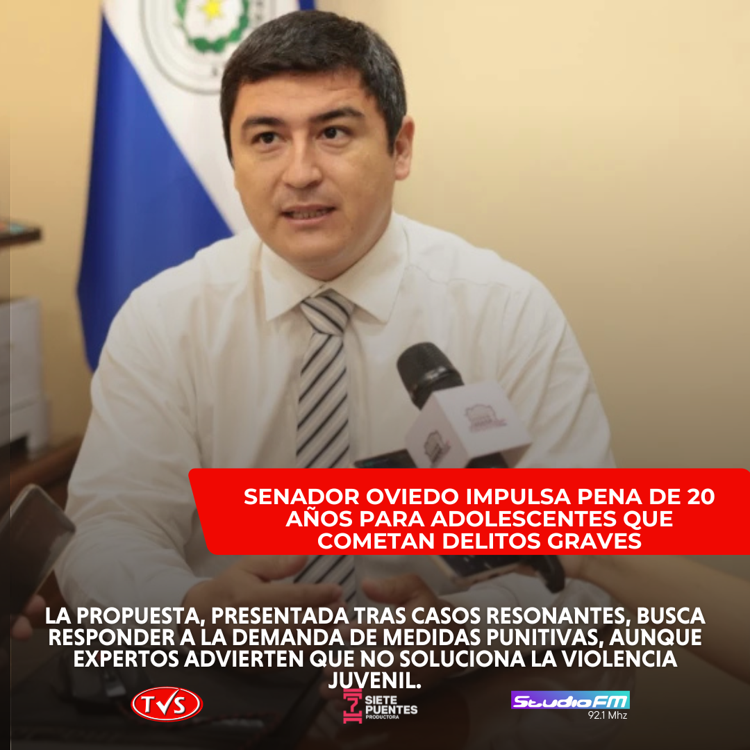 El senador José Oviedo, del partido Yo Creo, presentó un proyecto de ley que busca incrementar a 20 años la pena de prisión para adolescentes menores de 17 años que cometan delitos graves. La iniciativa, ingresada este jueves, responde a la creciente demanda de medidas punitivas tras casos recientes como el asesinato de un trabajador de delivery y el de María Fernanda en Coronel Oviedo.