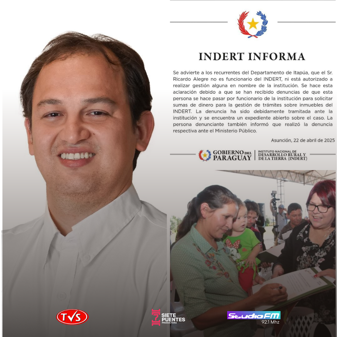 El Instituto Nacional de Desarrollo Rural y de la Tierra (INDERT) emitió un comunicado alertando a la población del departamento…