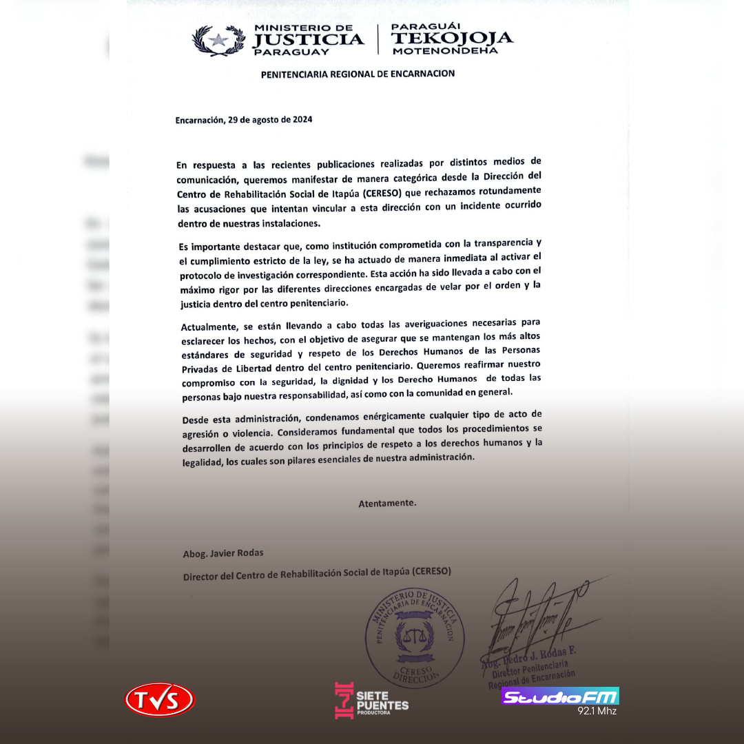 La Dirección del Centro de Rehabilitación Social de Itapúa (CERESO) ha desmentido enérgicamente las recientes acusaciones sobre torturas a internos…