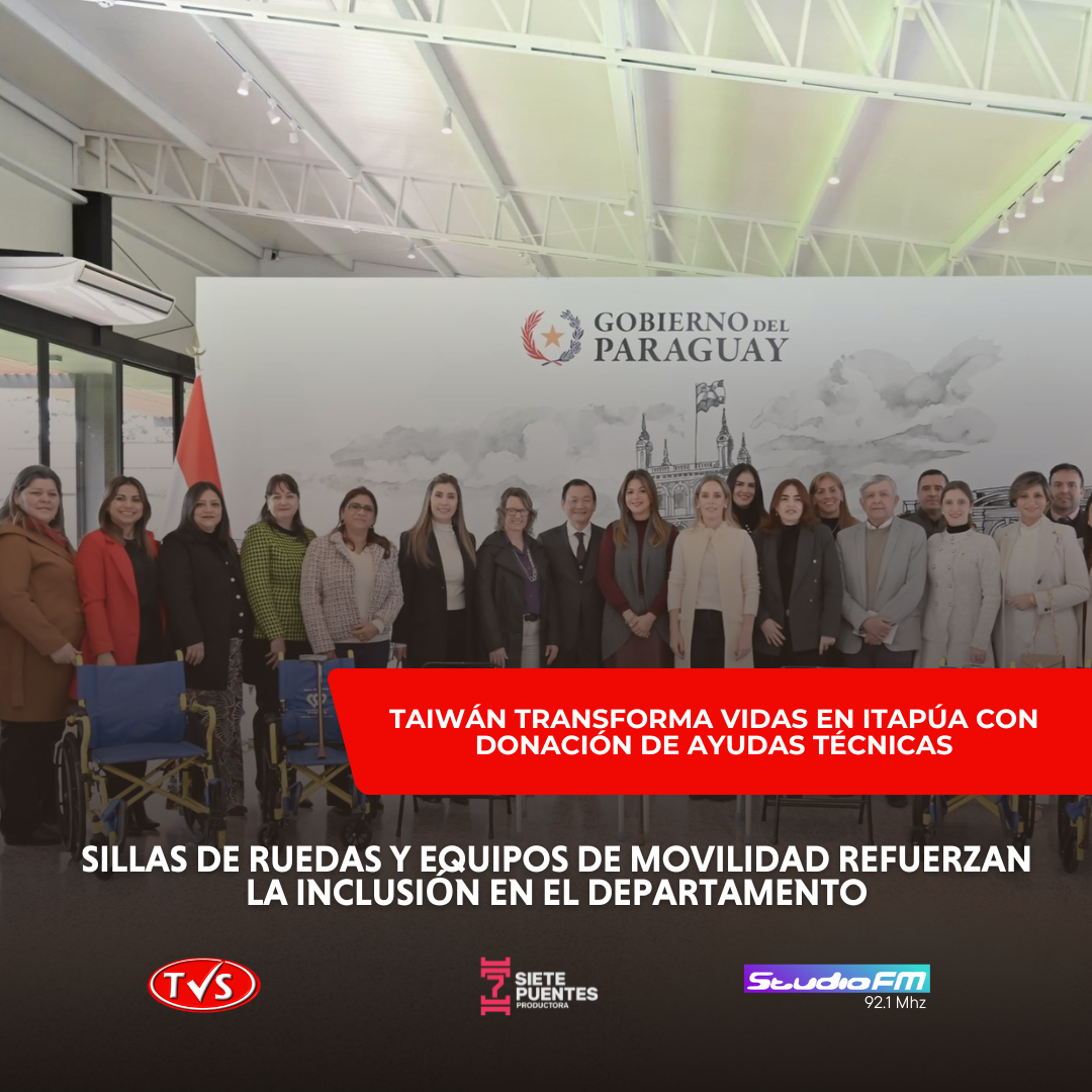 En un acto realizado en Mburuvicha Róga, la Embajada de la República de China (Taiwán) entregó un importante aporte al departamento de Itapúa para fortalecer las políticas de inclusión y apoyo a personas con discapacidad. La ceremonia contó con la participación de la Primera Dama de la Nación, Leticia Ocampos, y la Primera Dama Departamental de Itapúa, Lic. Nancy Berndt de Pereira, quien recibió oficialmente los insumos destinados a instituciones y organizaciones que asisten a personas con movilidad reducida o en situación de vulnerabilidad.